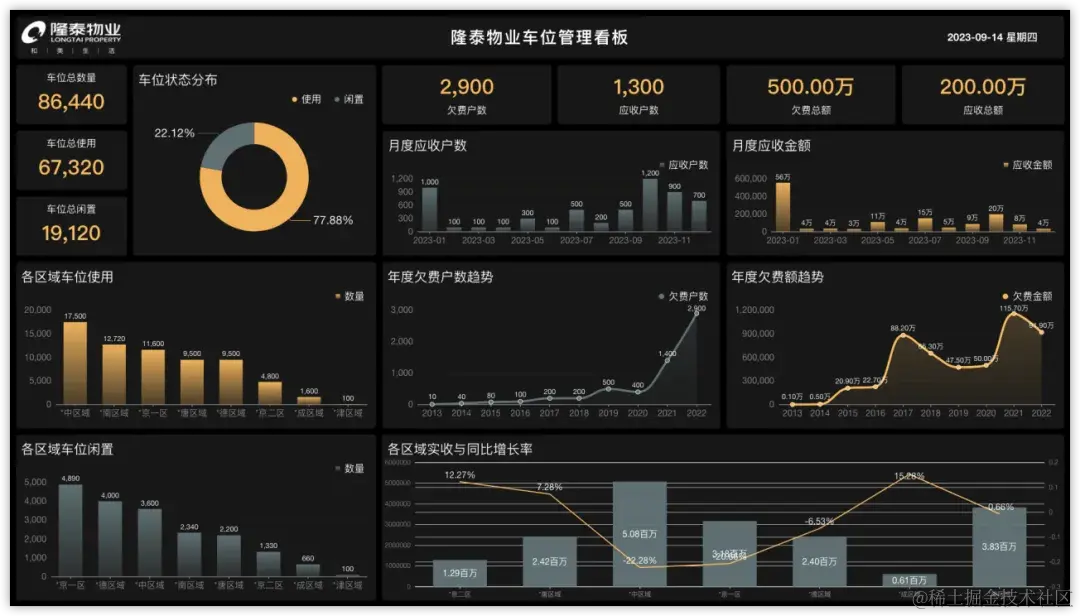 隆泰物业使用DataEase制作的部分大屏包括: