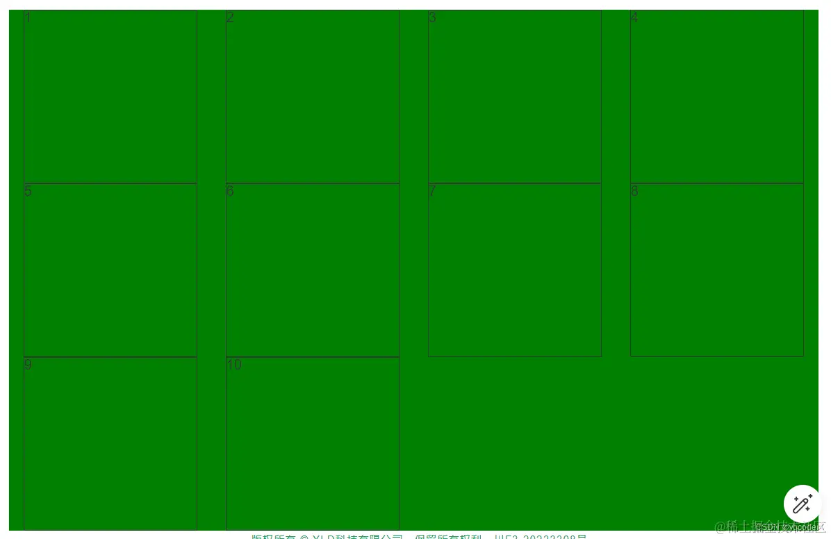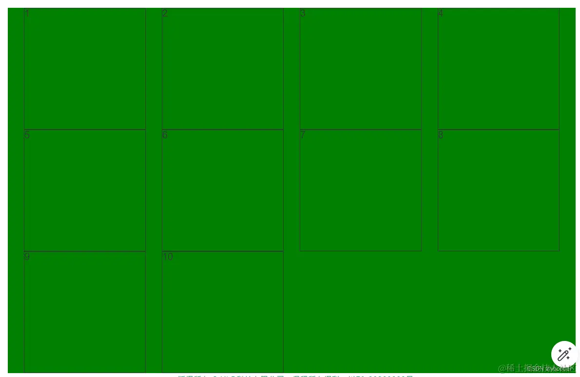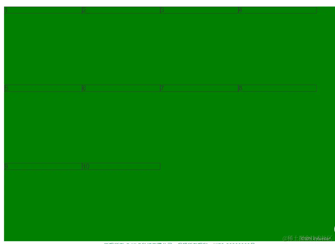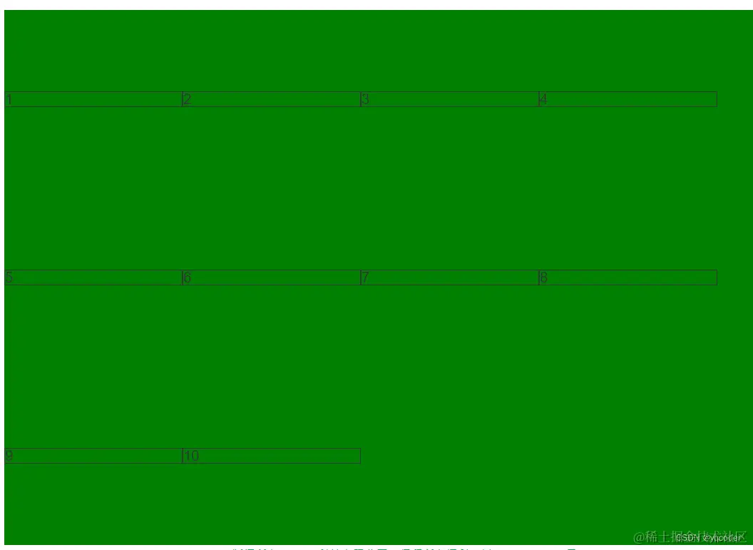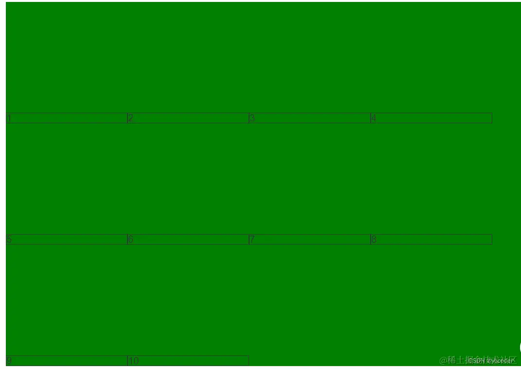 行间距和列间距简写,grid-gap: 行间距,列间距,如果第二个值省略,默认两个值相等。例:设置行间距,列间距都为 20px。