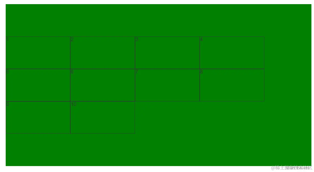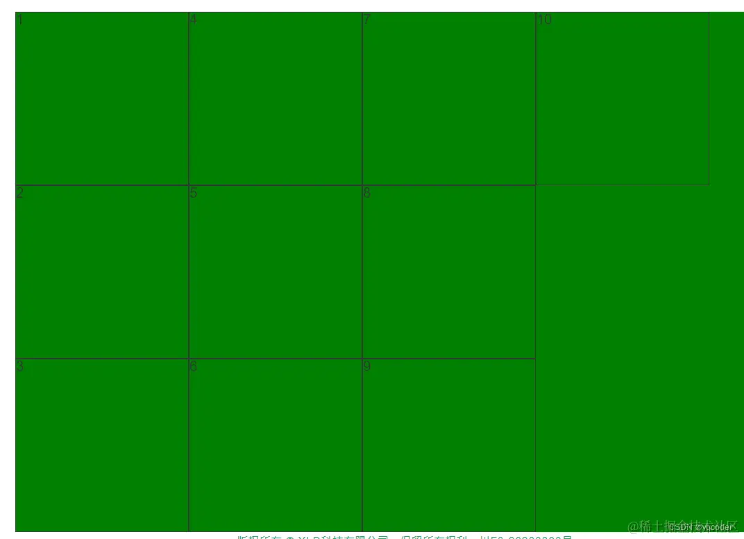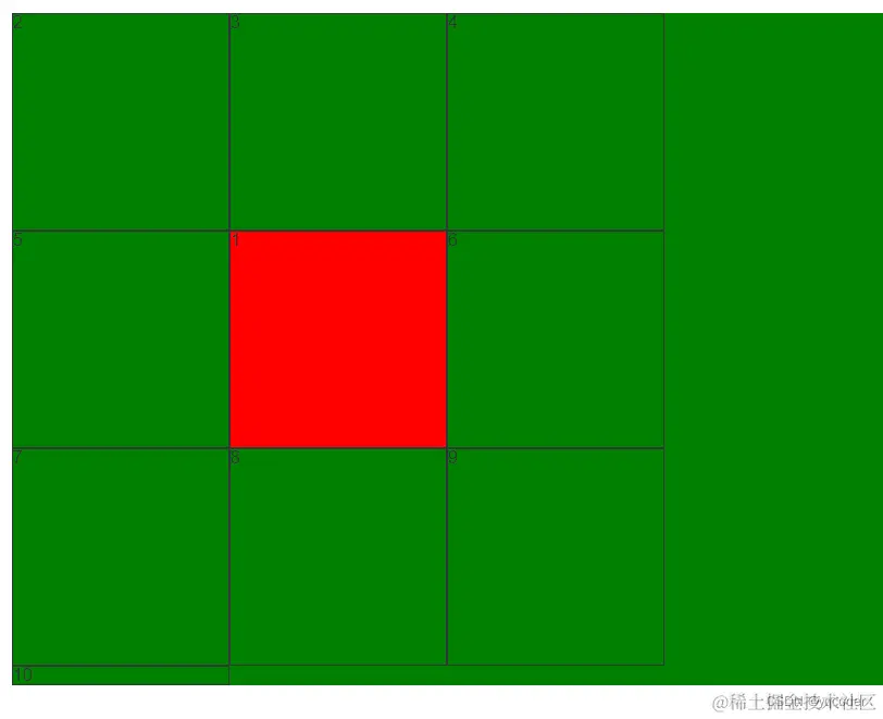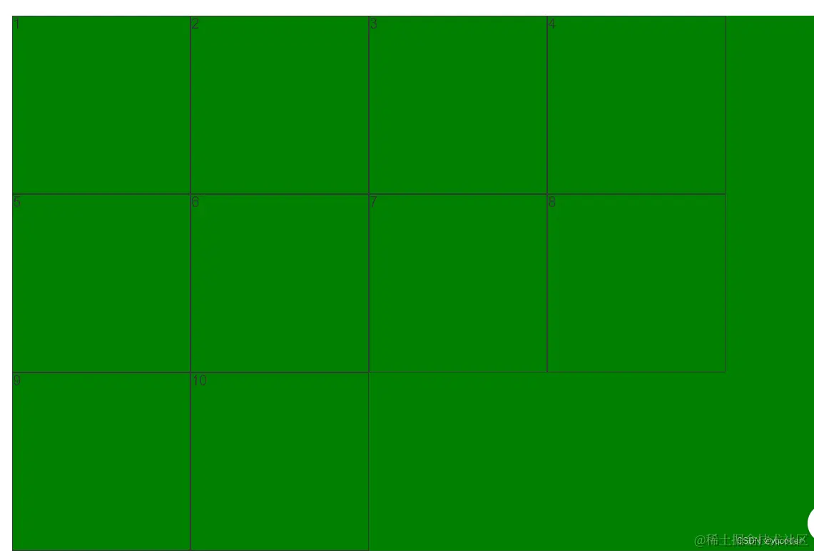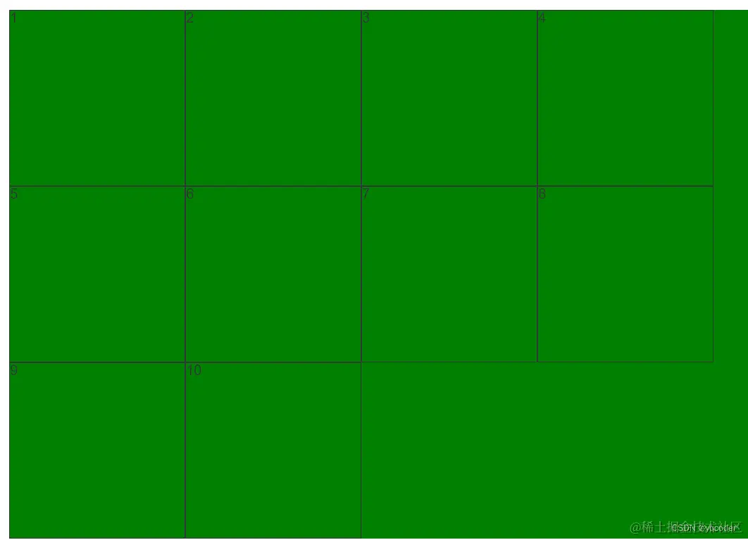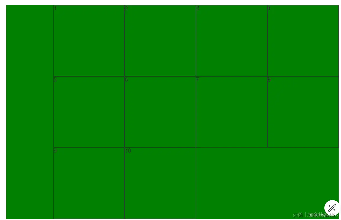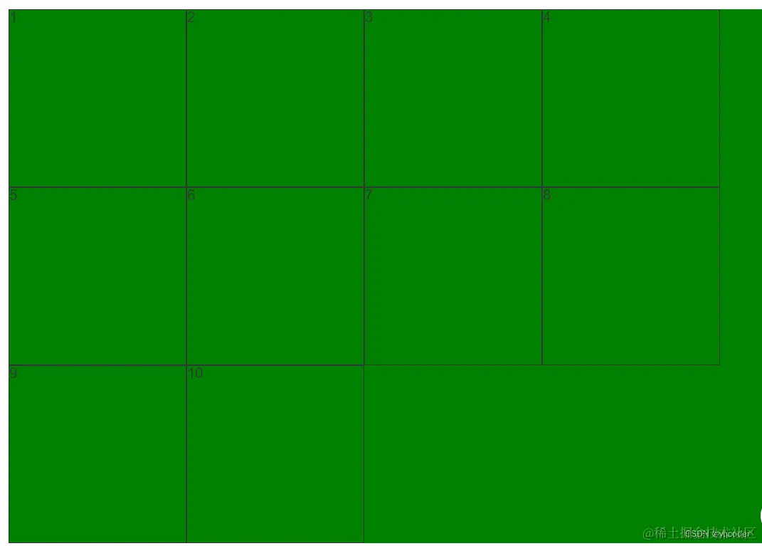 grid-area: grid-row-start / grid-column-start / grid-row-end / grid-column-end; 上、左、下、右边框垂直网格线简写
