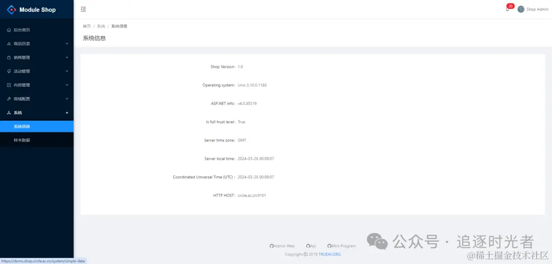 - 后台管理端在线预览地址:demo.shop.circle.ac.cn