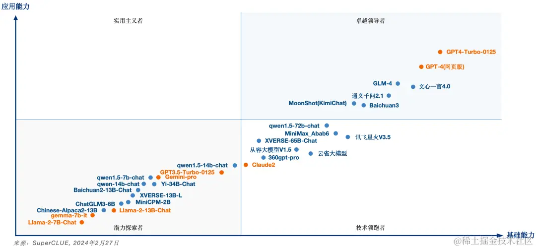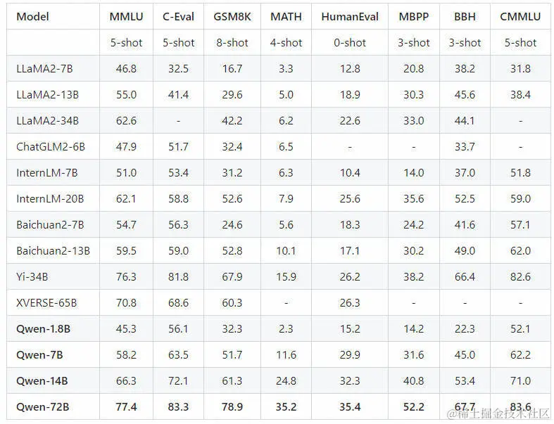 - 性能表现:在多个权威基准评测中取得开源模型最优成绩,证明了其卓越的技术实力和广泛的适用性,不仅超越了部分知名开源模型如Llama 2-70B,而且在与商用闭源模型的竞争中也展现出了竞争力。