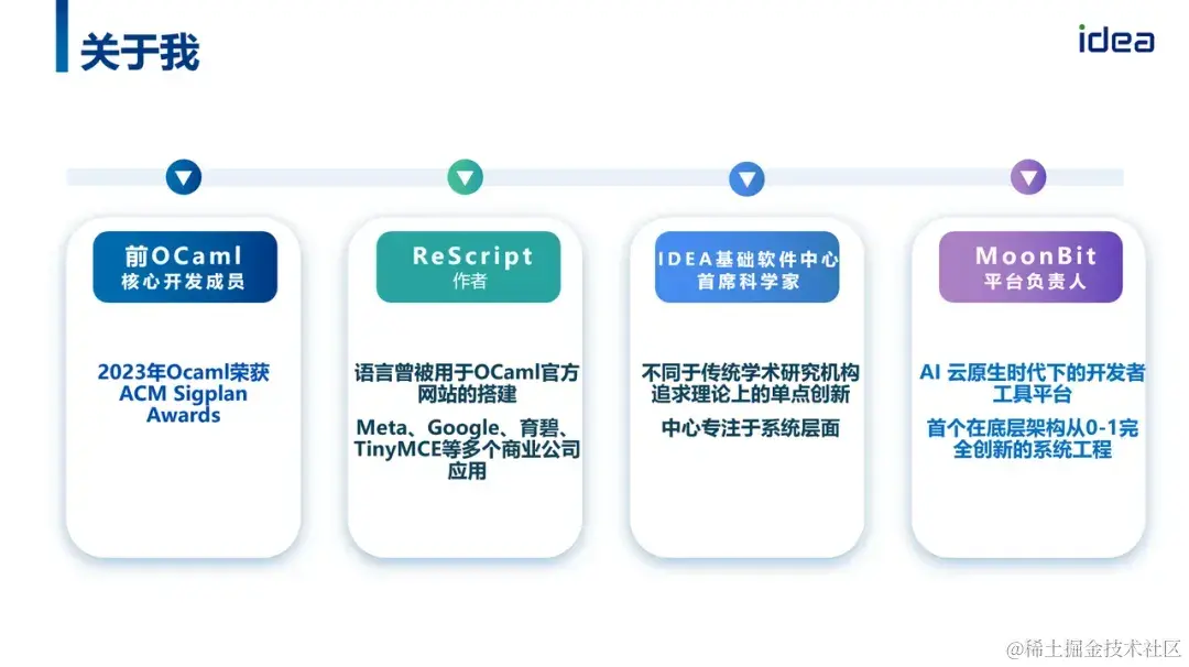 张宏波首先介绍了本人的编程语言开发经历,从本科开始至今,他关注并投入函数式编程语言开发已有十几年了,曾担任 OCaml 的核心开发人员,主导创造 ReScript(前 BuckleScript )。
