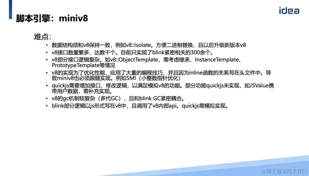 所以我现在做的 MiniBlink 相关的工作,我并不是想做一个完整的浏览器内核,而是想把它作为一个可以集成在各个软件之中,让它方便集成的一个内核,但是这样的话我就不会追求像 Chromium 那样完整的实现它所有的功能,因为这样的话一个是工作量会非常庞大,第二个是如果把这些做完了之后,它的那个就和 Chrome 可能差不多,它的大小可能也差不多,那就没什么意义。