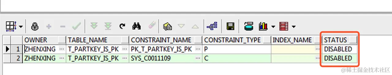 -- 手工将T_PARTKEY_IS_PK表的约束都disable