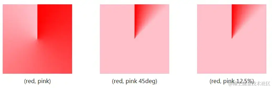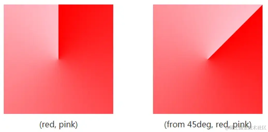 图二中设置了pink为45deg,并不是代表渐变的起始角度,而是在45度时,到达我们设置的粉色最深色。