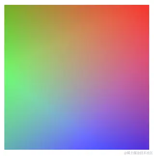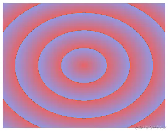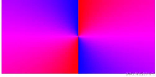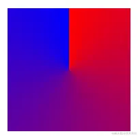 /* red和blue之间是过渡区域,red右下方也为红色,blue左上方也为蓝色 */