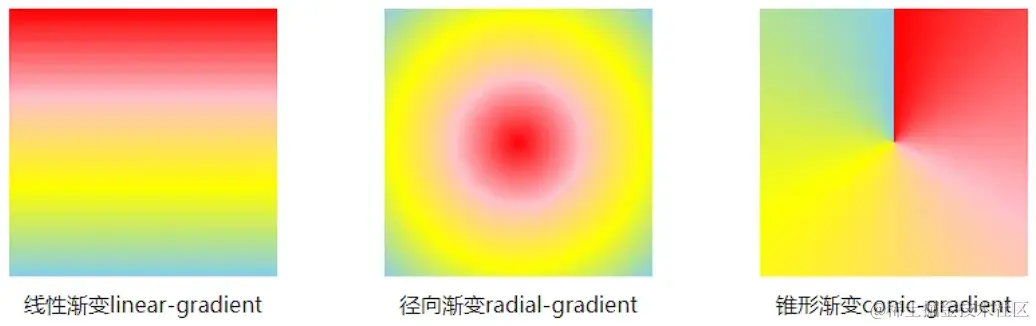 - 渐变图像都是背景图片而不是颜色,所以它们是background/background-image的属性值,而不是color/background-color的属性值。