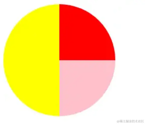 background: conic-gradient(red 0deg 90deg, pink 90deg 180deg, yellow 180deg);