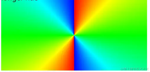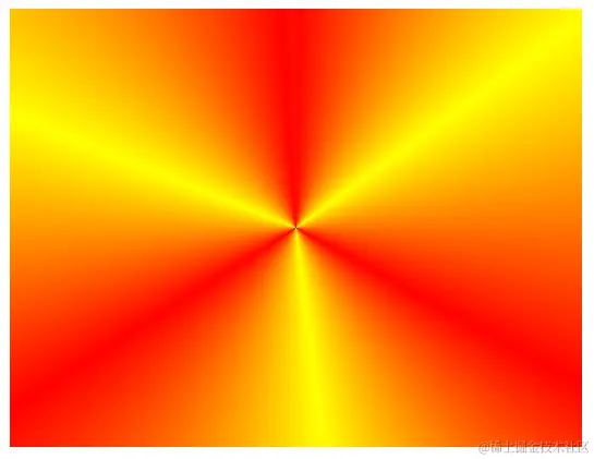 锥形渐变conic-gradient,创建一个颜色围绕中心点旋转产生的渐变图像。颜色沿着圆周进行渐变,渐变从顶部开始,顺时针进行,可以设置渐变的开始的角度,圆周中心位置,颜色中断的位置。颜色中断的位置只能取百分比或度数,绝对长度无效。
