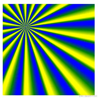 - 改变角度,默认情况下,你指定的不同色标是围绕着圆均等分布的。你可以在开始时使用“from”关键字以及一个角度或者长度以指定锥形渐变的起始点,然后你可以在后面包括角度或者长度以指定不同的位置。