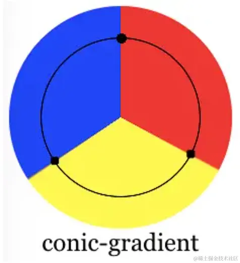 锥形渐变conic-gradient可以设置渐变开始的角度和渐变的中心点。