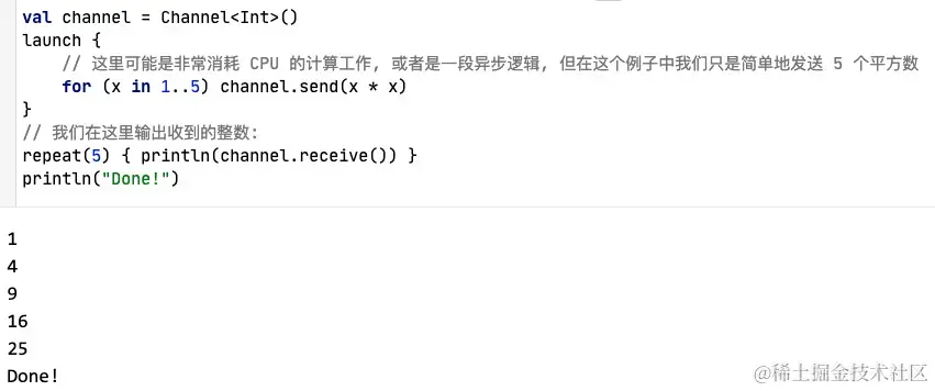 ReceiveChannel:通道的数据接受的封装对象,producer产生数据后返回的对象即时这个对象,封装了产生的数据(具体可以参考上面的代码)。