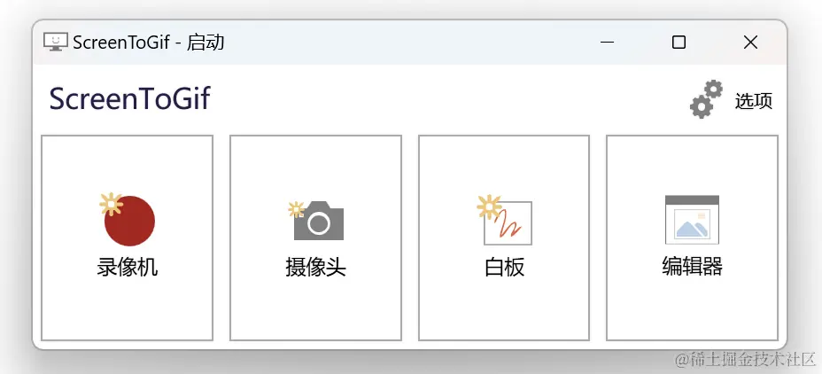 ScreenToGif的使用特别简单,当你下载安装完成后,点击打开,即可进入ScreenToGif程序功能面板: