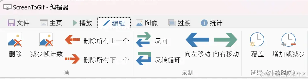 你也可以点击编辑按钮,快捷的删除、减少帧数,或者删除某一帧之前或之后的所有帧。亦或是将动图顺序进行反向、调整动图顺序。