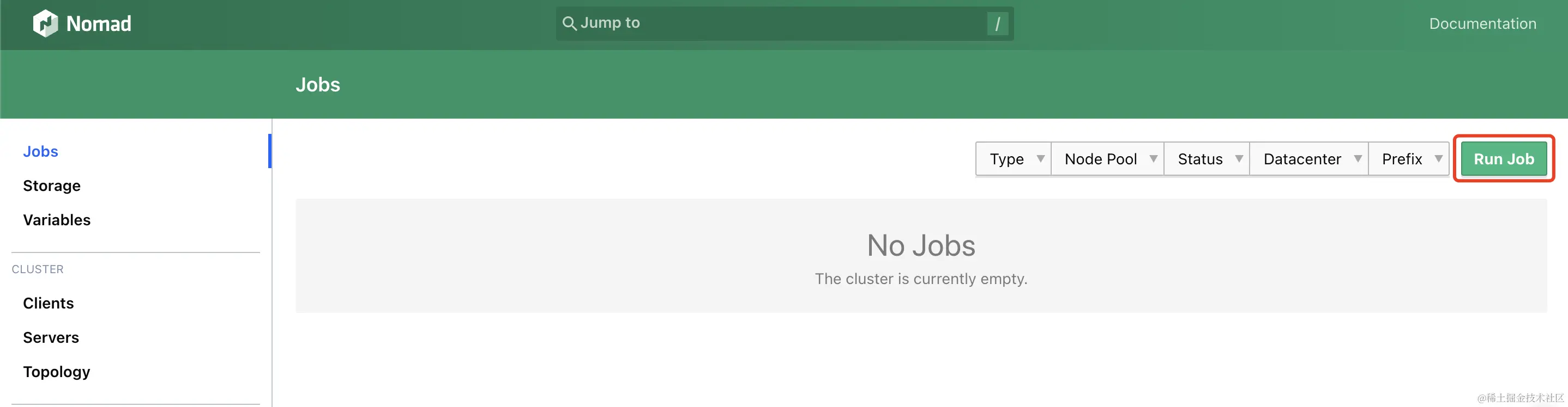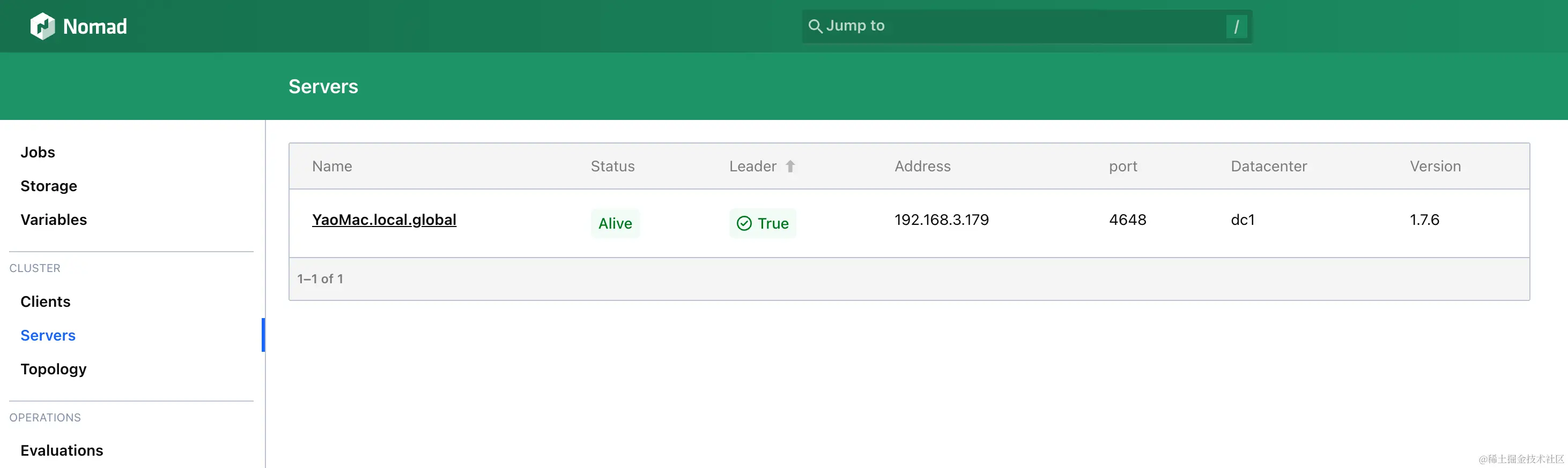 官方支持了一款简洁的 UI 界面,访问http://127.0.0.1:4646/ui,即可进入我们的 WebUI 管理界面