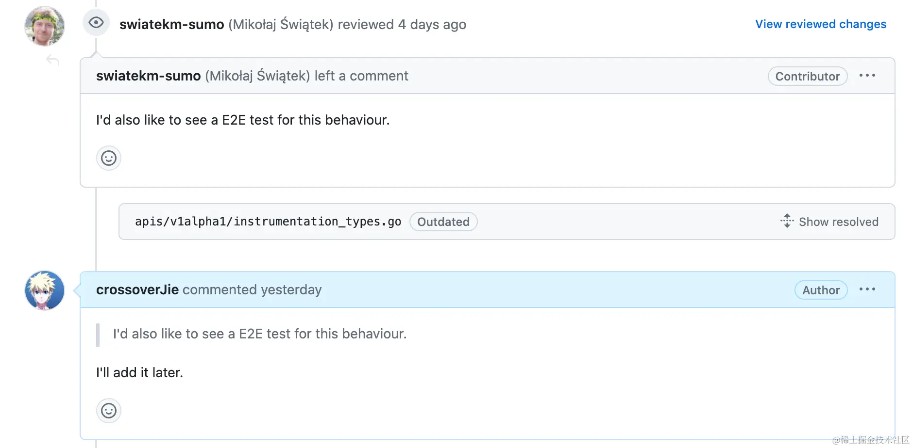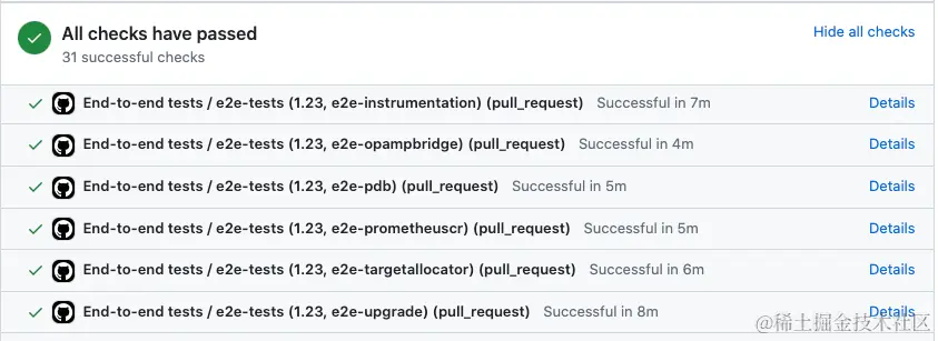 最后不得不感叹作为 CNCF 下面的项目 OpenTelemetry 的开发者体验真好,只要我们跟着贡献者文档一步步操作都能顺利通过 CI 测试,同时还能避免一些 Code Review 过程中的低级错误。