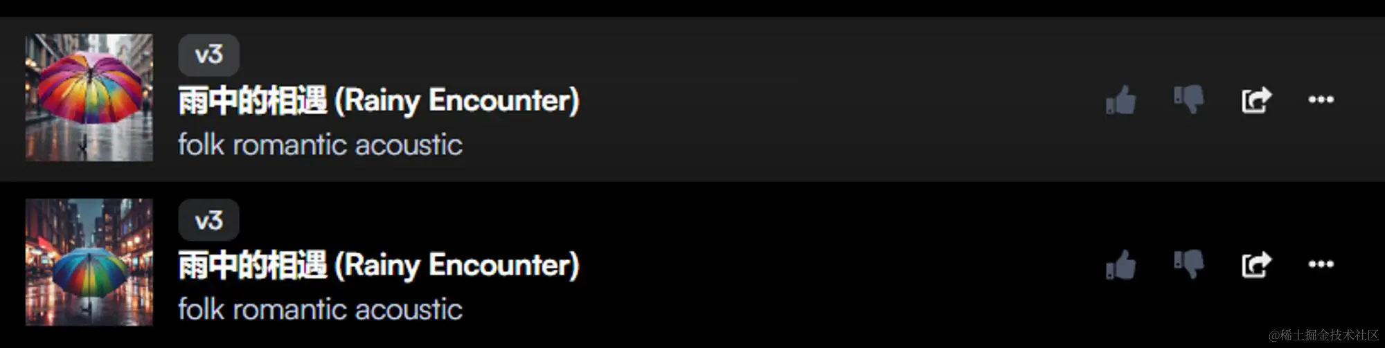 稍等个一分钟,Suno就帮我们创造出了两首原创的AI音乐