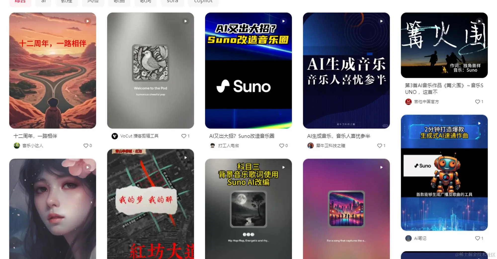 小红书上也出现了大量的AI音乐、教程相关内容,不知道这次的热点会持续多久。