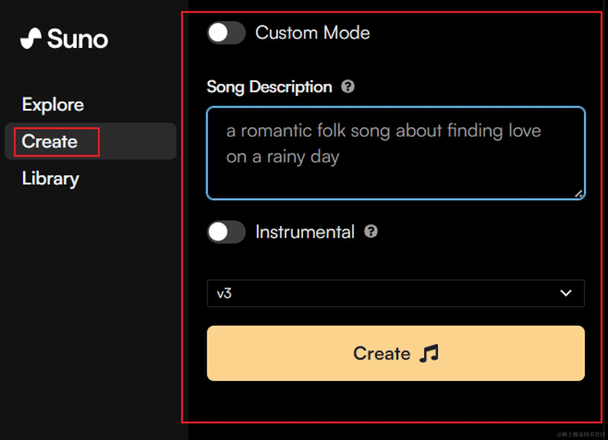 Instrumental(乐器):开启后,创作无歌词的音乐。