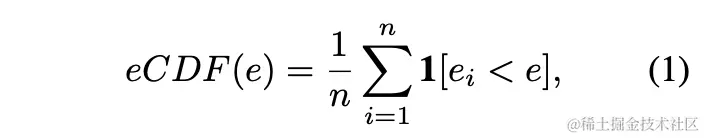 在进行实验之前,论文先对模型和数据集进行分析。定义eCDF(empirical cumulative error distribution)指标,用来标记错误率低于x的模型比例,n个模型的eCDF计算为: