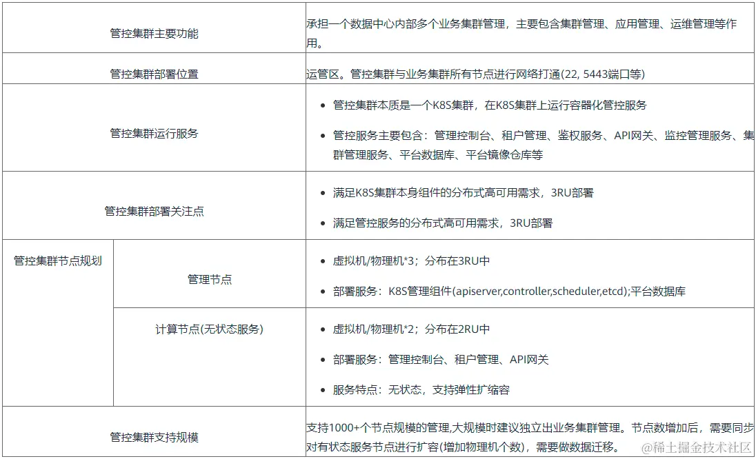 采用多集群模式,一个数据中心一套独立的管控面,避免跨数据中心的依赖。在每个数据中心,存在一个管控集群,和基于业务情况规划的业务集群。