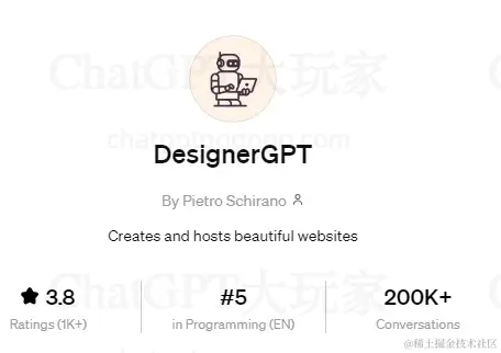 Designer GPT 可以用于设计和生成HTML网页并托管网站。你只需一个想法,它就能在几秒钟内帮你建立一个全新的网站。