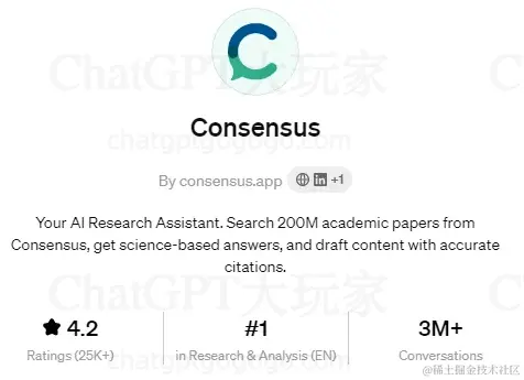 Consensus是在学术研究分析领域排名第一的工具。