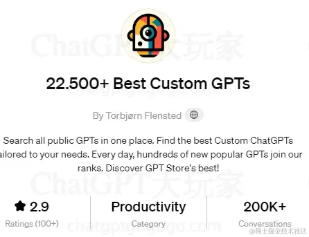如果我前面推荐的无法满足你具体的使用场景,那么22.500+ Best Custom GPTs一定可以满足你的要求。