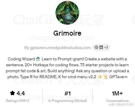 Grimoire是在编程领域排名第一的GPTs工具。