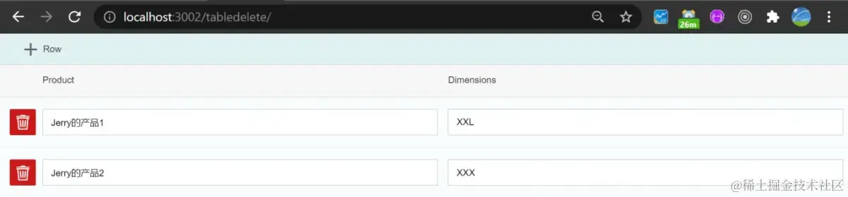 然后浏览器访问 http://localhost:3002/tabledelete/ 即可: