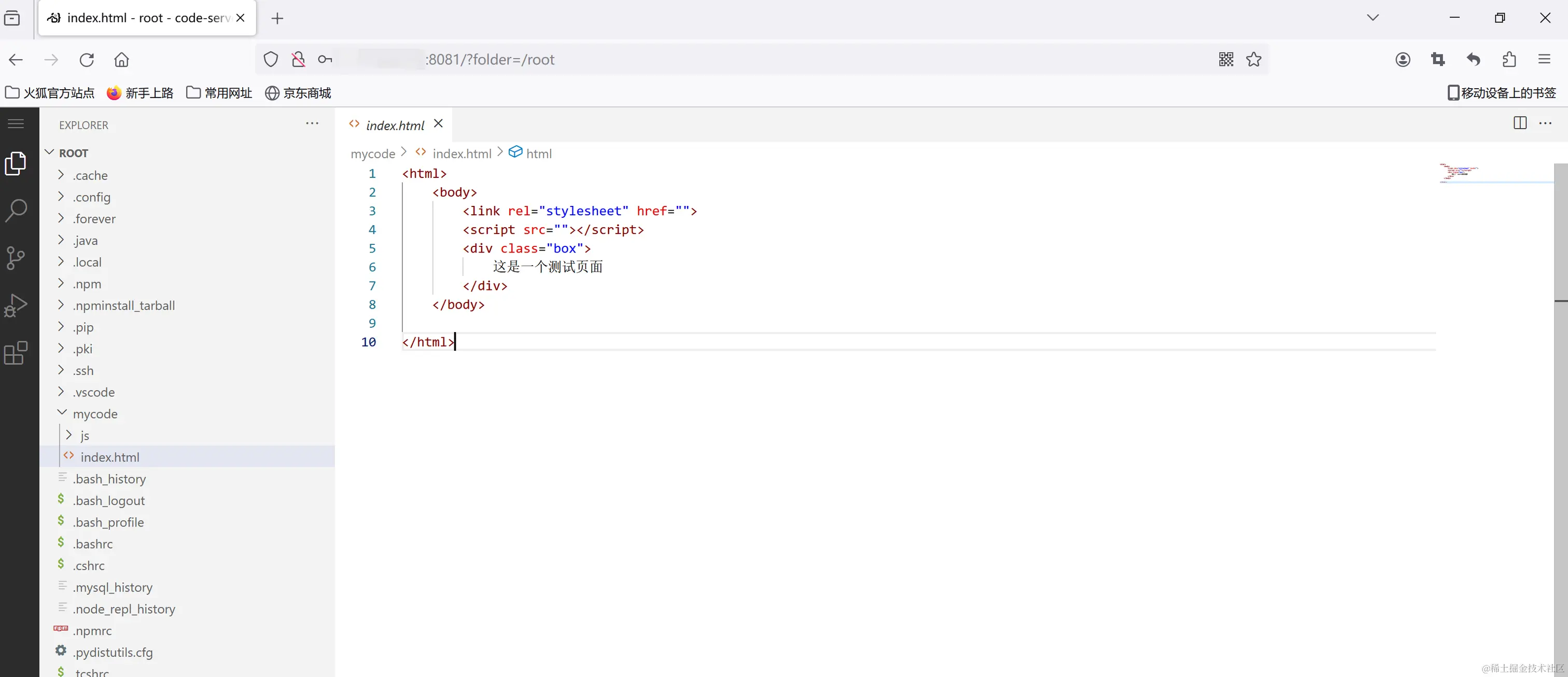 g、此时在自己的window电脑上就可以通过:服务器ip:8081 来访问web版的vscode了,效果如下图: