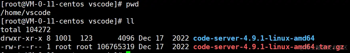 d、使用wget命令下载code-server压缩包,我这里安装的是4.9.1版本