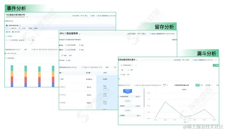 拥有完备的数据之后,决定品牌和品牌之间差距的,是商业决策的效率。而正确且迅速的决策,需**以强大的分析能力和对业务的深刻洞察为基础。**比如,当我们发现复购用户流失情况严重,不仅要查看表层的流失数据,更要深挖行为偏好和沉默原因:因为门店闭店而沉默的用户有哪些?他们更倾向哪种促销策略?他们当初是如何被吸引来?是否能挖掘出流失的前兆?他们的消费高峰在什么时段?
