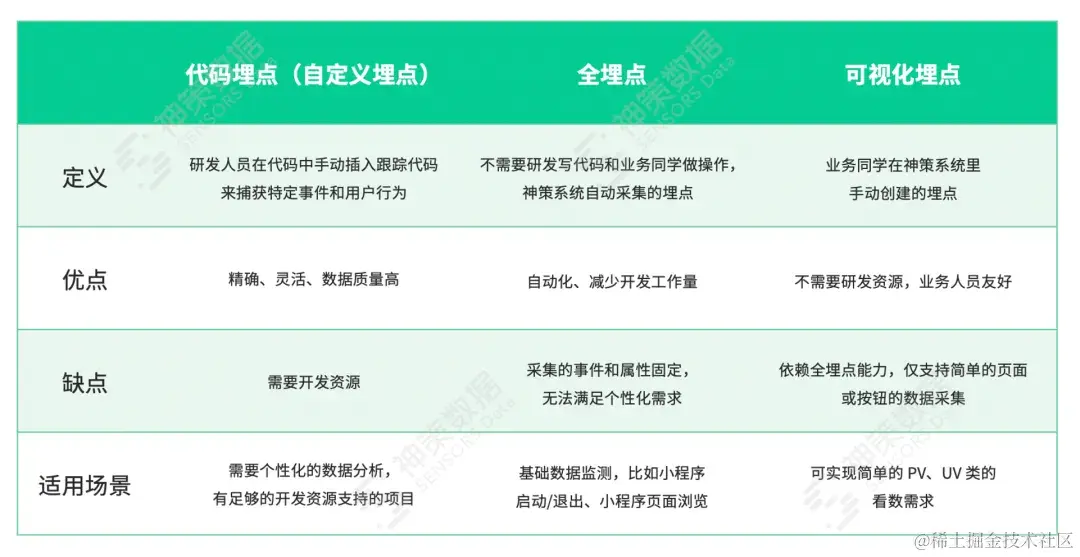 图 三种埋点方式的定义和优劣对比