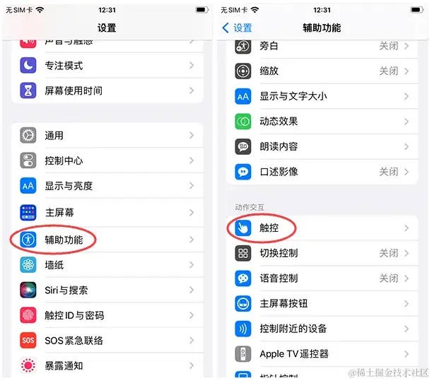 步骤1:依次打开**【设置】>【辅助功能】>【触控】**。