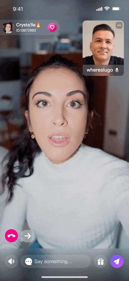 **1v1 视频社交以其功能简洁、互动性强、匹配效率高等特点,在陌生人社交玩法中饱受用户欢迎,**平台仅需让两个用户通过匹配、选择等形式连通后,用户即可在房内进行 1v1 视频社交,且在社交的同时又极具私密性,满足了用户社交与 dating 的需求,盛行在中东土耳其、印度、南美等一些热门出海地区。