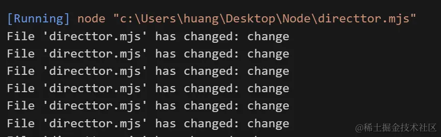 console.log(`File '${filename}' has changed: ${eventType}`)