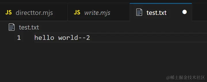 // 使用 fs.appendFileSync() 方法向指定文件追加内容
