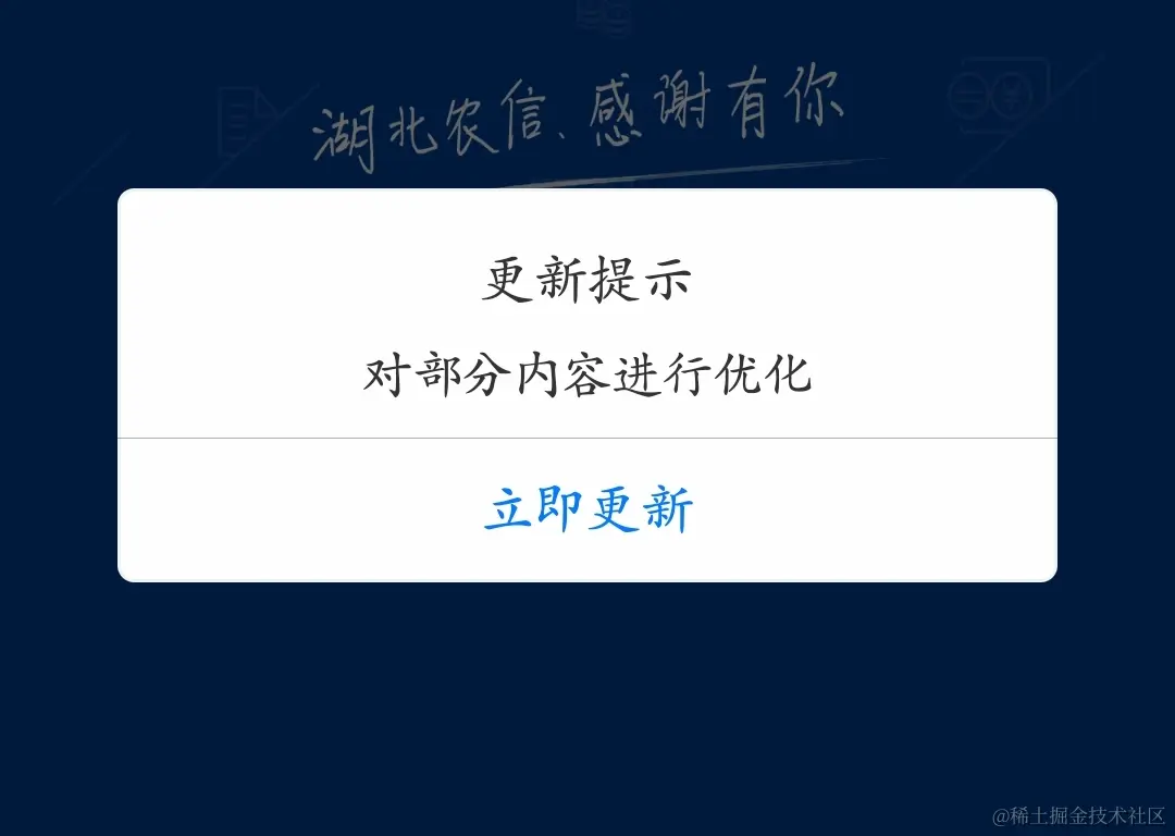 某天,我打开了一个许久没有使用的某信银行的软件,开屏是一个很丑陋的背景,加上一个弹窗,大致的意思是:需要更新软件版本。在弹窗的下半部分还贴心的展示了一个“立即更新”的按钮。我的直觉告诉我:我应该去软件商城下载。于是去小米的应用市场更新了软件。