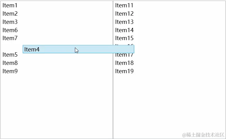 至此基本功能已经开发完成了,下面我们为它添加上动画效果,让它更具有观赏性。动画的核心思想就是记录每个元素旧位置的坐标,当元素移动到新位置时启动一个动画,从旧坐标过渡到新坐标,由于代码太过基础,这里就不展示了,直接上效果。