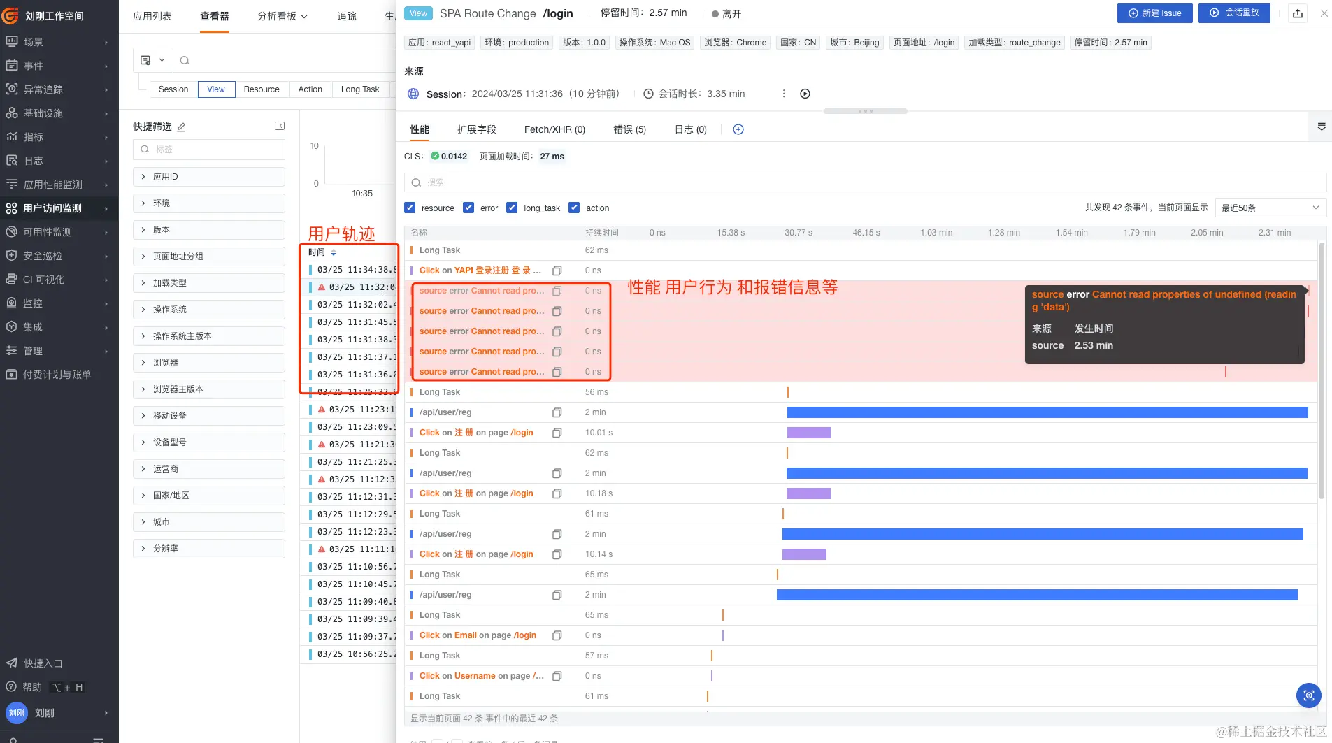 - 页面报错、性能以及设备等信息