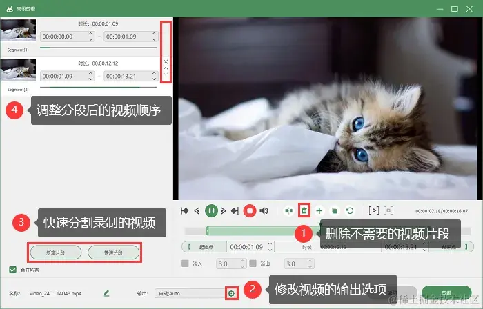步骤3:录制完成后,你可以在软件内预览录制的视频,并进行剪辑、快速分段等后期处理。最后,将视频导出至指定位置。