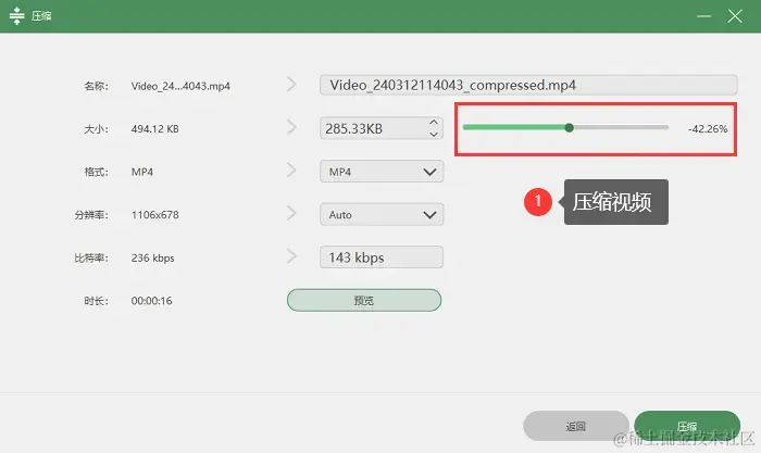 步骤4:如果你觉得录制的直播视频占用内存较多,不利于分享,不用担心,在历史记录页面可以对它进行压缩。