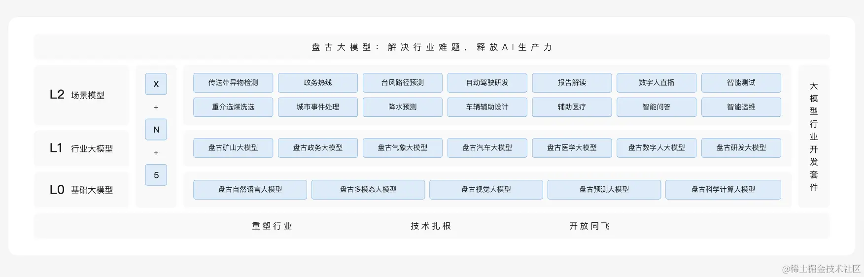 华为云盘古大模型正式对外发布以来,也一直颇受关注,盘古大模型提供5个基础大模型(自然语言、视觉、多模态、预测、科学计算)+N个行业大模型+X个场景模型的三层解耦架构, 天然具备良好的生态开放性,通过分层的AI能力及工具,成就不同行业开发者百模千态的需求。