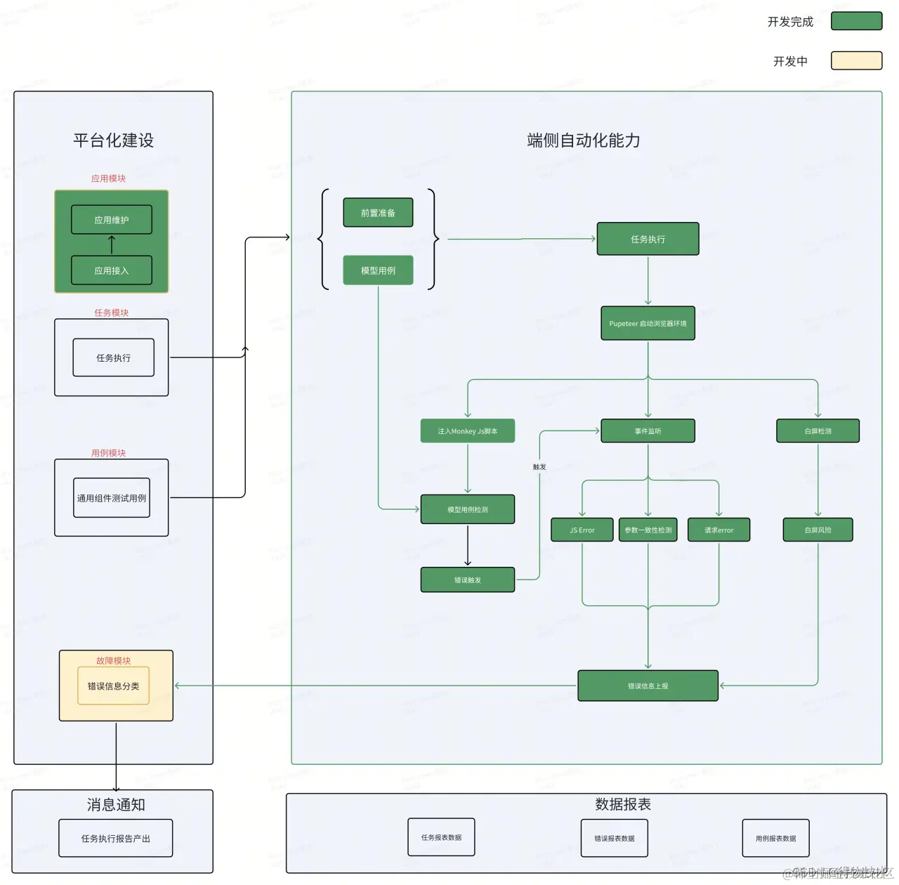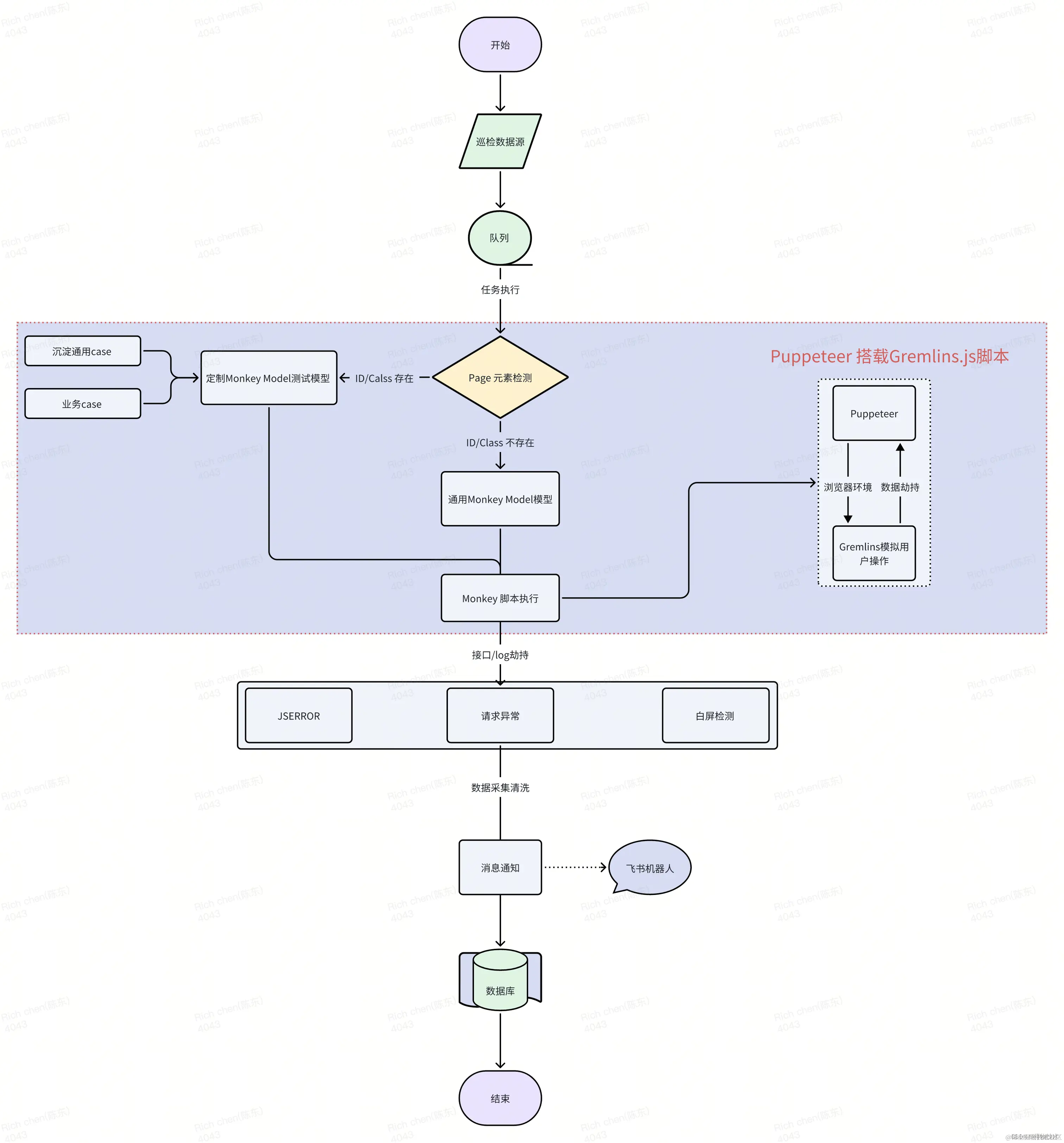 - 数据清洗 : 在这个阶段,基于Node服务实现数据上报和清洗。Monkey会将执行阶段下的操作行为数据上报给后台服务,后台服务可以对这些数据进行分析和处理,以生成测试报告、统计指标等。同时,也可以对数据进行清洗,以去除无效或冗余的信息,保持数据的准确性和可用性。