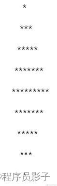 - 确定图案的宽度和高度:图案的宽度由中间行(最大宽度)和两边逐渐减少的行决定。可以设定中间行为最大宽度,两边各减少一个星号。
