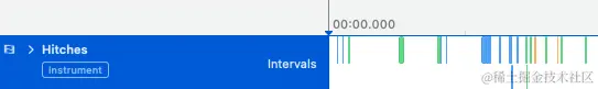 你可以在此示例中看到一些更多的橙色。有更多的动画卡顿超过了可接受的延迟时间 33 毫秒。这导致在执行测试时在仪器和视觉上都出现一些可见的卡顿。