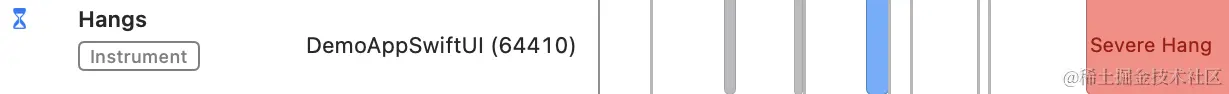 接下来,让我们做同样的测试,同时使用 AnyView 包装器。以下是动画卡顿仪器配置文件中的结果。