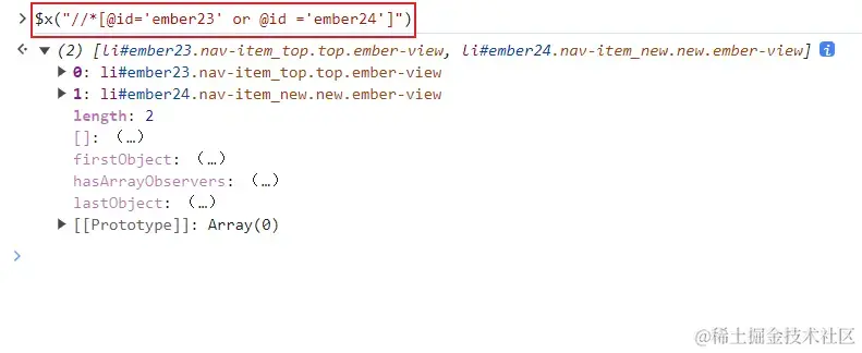 选取属性 id 的值为 ember24 或属性 id 的值为 ember23 的 input 标签