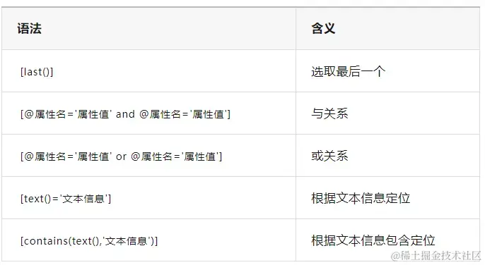 - 相比于 css 可以支持更多的方式:XPath 相对定位可以访问 XML 和 HTML 文档的任何部分,而不仅仅是元素和属性。
